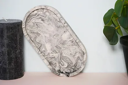 Nous pensons notamment à nos dessous de verre ronds en résine, dans lesquels nous incluons délicatement différents éléments comme des mousses végétales ou des feuilles séchées aux couleurs d'automne. Nous pensons aussi à nos plateaux, nos portes bijoux, et nos miroirs effet mer, qui par leur construction minimaliste évoquent également ce style.