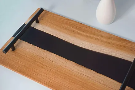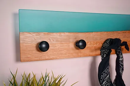 Nos créations sont épurées et modernes. Elles apportent dans un intérieur une touche contemporaine, mais aussi chaleureuse grâce à la présence de bois de chêne massif. Les coloris sont variés et peuvent correspondre à différents esprits. Un bleu translucide reflétera une ambiance bord de mer tandis qu'un violet irisé peut correspondre à un style pop et coloré ou encore un noir mat complétera à merveille une décoration industrielle. A vous de choisir !